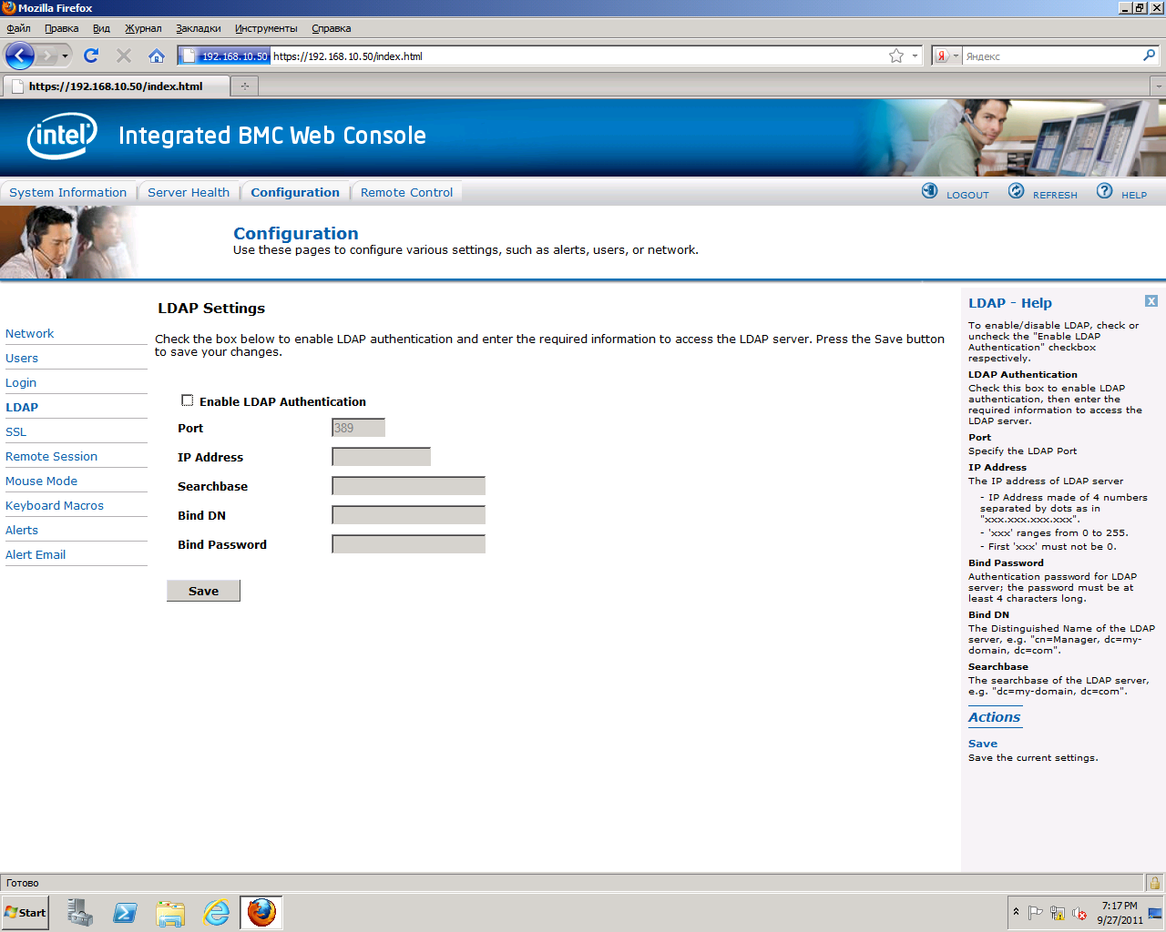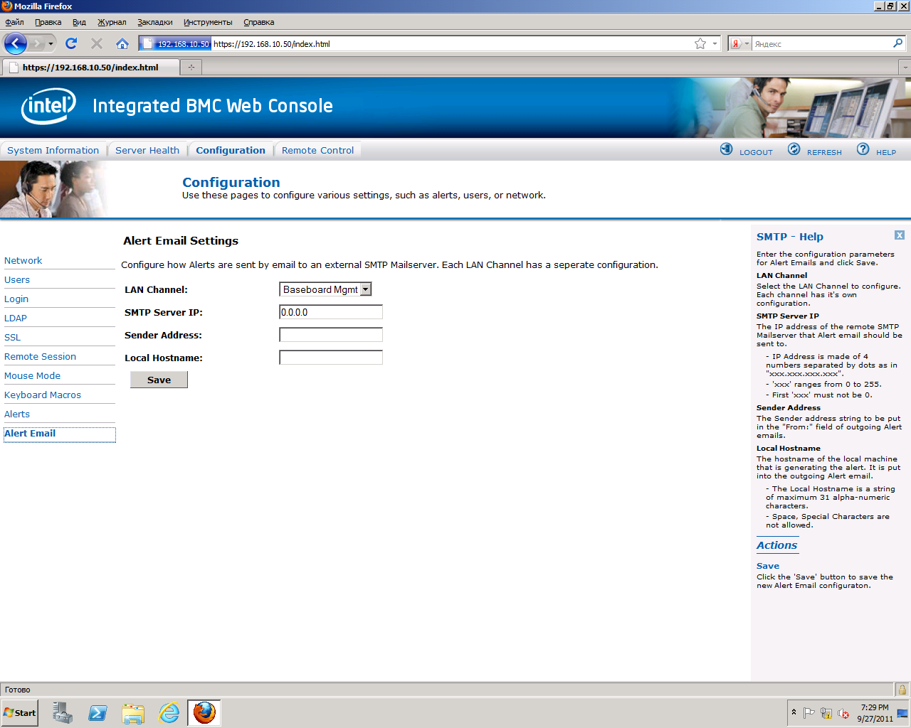 Вкладка "Configuration" служит для настройки конфигурации BMC и RMM-модуля: