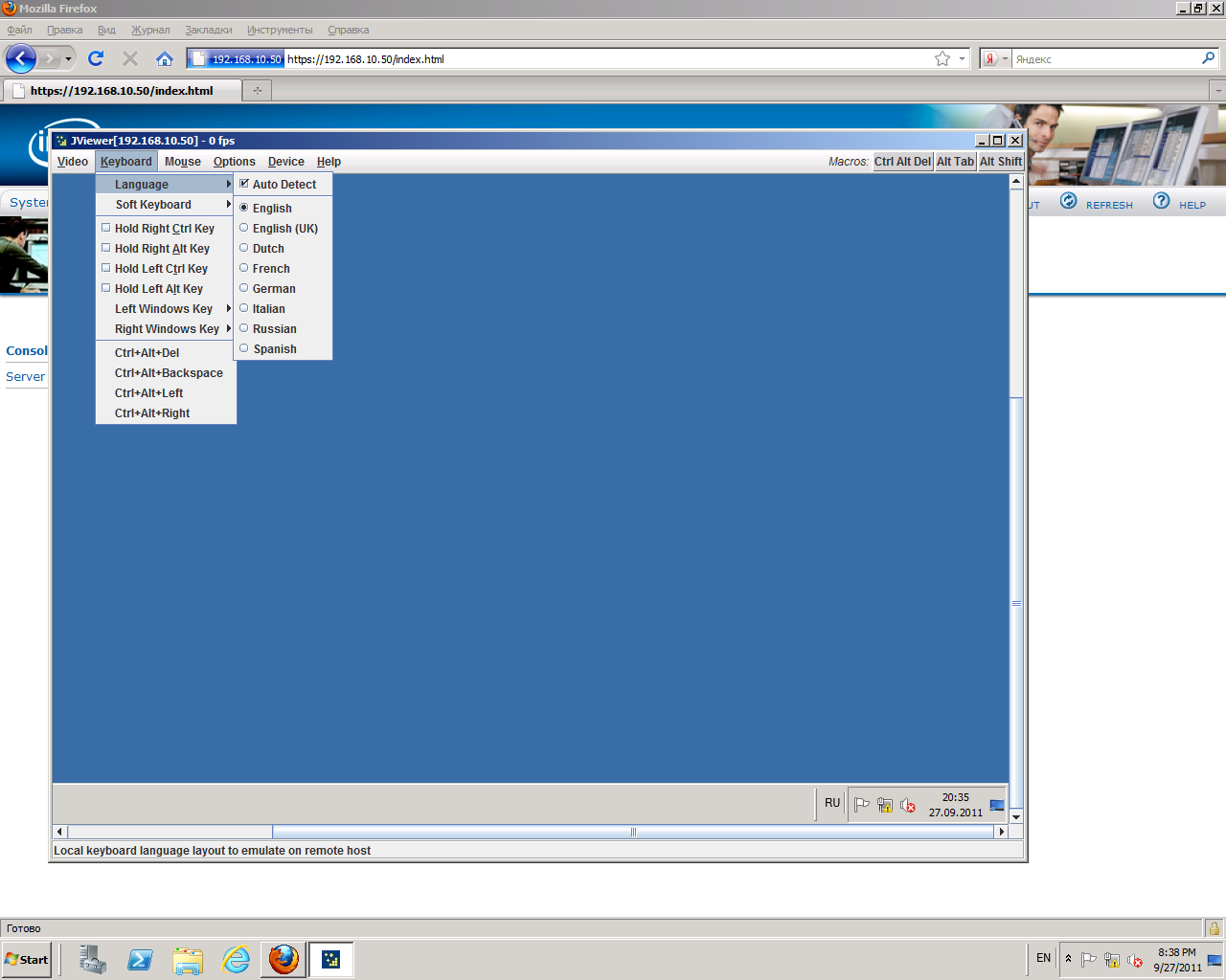 Для работы с сервером через модуль RMM необходимо установить на управляющий компьютер Java Runtime Environment (JRE) Version 6, Update 22 или выше.