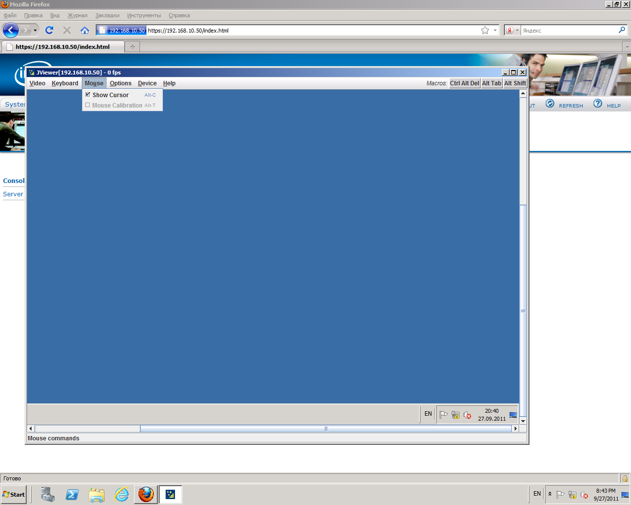 В режиме перенаправления консоли на мониторе управляющего компьютера отображается окно консоли с содержимым экрана сервера, а сигналы локальных мыши и клавиатуры передаются на сервер.