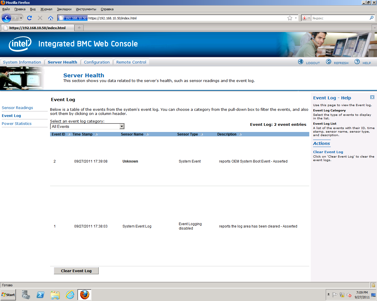 Event Logсодержит журнал системных событий сервера.