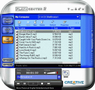 Поддержка AC3 повлияла и на и состав ПО, идущего в комплекте с картой. Новая версия универсального проигрывателя от Creative - Playcenter 2.0, кроме всего прочего проигрывает файлы в формате ac3. Несколько музыкальных композиций в данном формате уже находится на диске с драйверами.