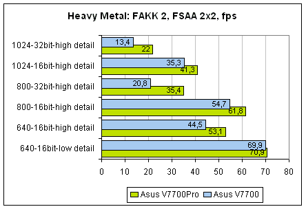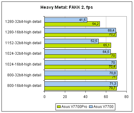 Начнем с игры FAKK2 (Quake3 engine), замеры в которой проводились при выключенном звуке. Полученные результаты были вполне предсказуемы – с разрешения 1152х864 отрыв Pro становился все более ощутимым.