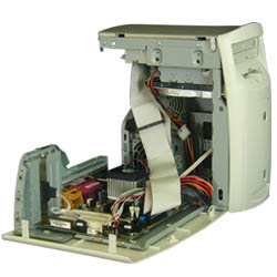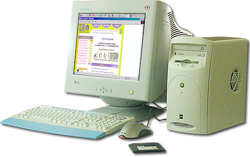На приведенной ниже таблице можно видеть, что находится под перышками у нашей птички. Система построена на базе материнской платы Asus CUSI-M, о которой мы совсем недавно рассказывали в обзоре Asus CUSI-M: интеграции быть!. Данная материнская плата является интегрированным решением и уже содержит в себе видео и звуковой адаптеры, а также сетевую карту. В качестве накопителей применяются жесткие диски Fujitsu объемом 10, 15 или 20 Гб и 50-ти скоростной CD-ROM Acer (опционально).