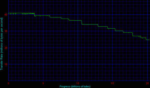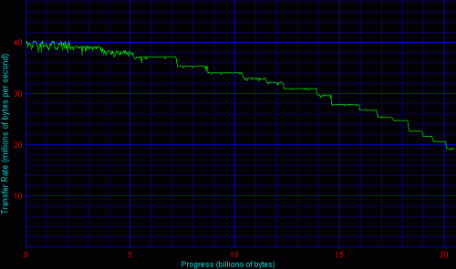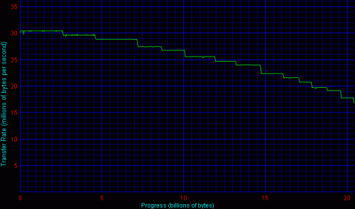 Графики линейного чтения обоих накопителей показали, что релоцированных блоков на дисках нет. Ни провалов, ни зазубрин - плавная кривая, как и должно быть.