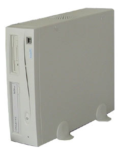 Дизайн, в котором исполнен teamPC, позволяет одинаково легко устанавливать его как горизонтально (в качестве подставки под монитор), так и вертикально. Накопители CD-ROM, которые мы используем, штатно поддерживают вертикальную загрузку дисков, поэтому функциональность компьютера при "башенной" установке ничуть не страдает. И какой бы вариант установки вы не выбрали, teamPC не займет много места, потому как он не толще большого тома энциклопедии (9 х 31 х 40 см).