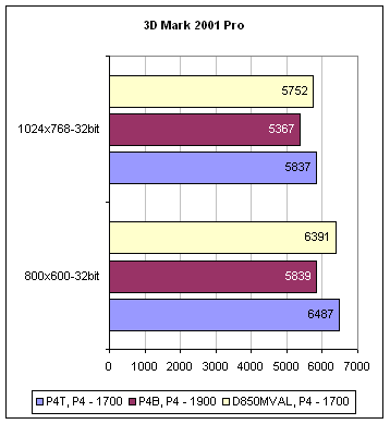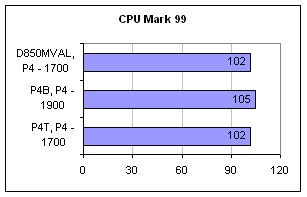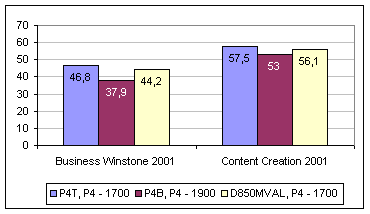 В BW2001 и CC2001 плата D850MVAL немного уступила P4T, в среднем 2-5%, что, согласитесь, совсем немного.