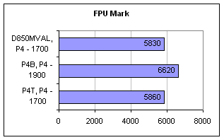 FPU Mark - тест, демонстрирующий быстродействие процессора при операциях с плавающей запятой. Слабо зависит от объема кэша и частоты системной шины.
