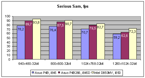 Собственно здесь комментарии не нужны, ситуация повторяется - в низких разрешениях по производительности P4B266 дышит в затылок лидеру на i850, а по мере роста разрешения начинает отставать. Однако преимущество над SDRAM системой бесспорное.