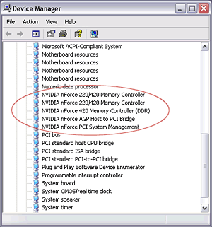 Устройства, составляющие чипсет nForce, были установлены корректно, а драйверы мы установили самые новые http://www.nvidia.com/view.asp?PAGE=nforce_drivers