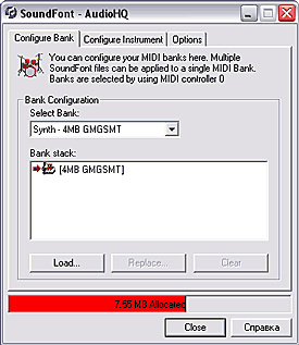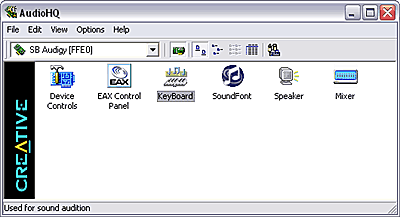 Менеджер загрузки библиотек MIDI-сэмплов у Audigy называется SoundFont и находится он в программе AudioHQ: