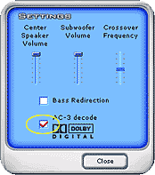 Включается эта возможность ПК во вкладке Surround Mixer - Speakers - AC3 Decode, где задается тип внешней акустической системы, подключаемой к ПК: