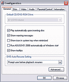 основная панель управления AsusDVD 2000