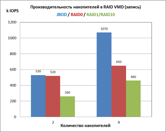 - какова производительность RAID-массивов из накопителей NVMe на базе технологии VMD?