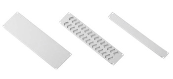 Заглушки устанавливаются для скрытия неиспользованного пространства между коммуникационным оборудованием. Служат для защиты от проникновения пыли, в ряде случаев позвлояют оптимизировать теплообмен. Повышают эстетические качества шкафа.