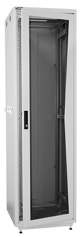 Шкафы выполнены в 19" стандарте. Несущая конструкция шкафа выполнена из 1,5мм стали. Направляющие выполнены из 2мм стали. Передняя и задняя дверь выполнена из 1,5мм стали, а боковые стенки из 1мм стали. Боковые двери шкафа снабжены 2 замками и 2 защелками. Задняя дверь снабжена 2 замками. Передняя дверь снабжена ручкой с замком и может быть как со вставкой из ударопрочного тонированного в массе стекла, так и глухой металлической. В комплект к шкафу входят 13 ключей.