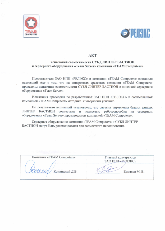 СУБД ЛИНТЕР БАСТИОН и серверного оборудования "Team Server" компании "Тим. Компьютерные системы".