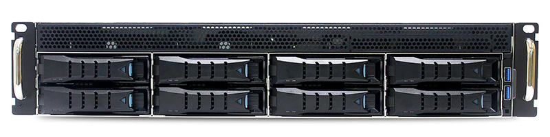• для установки в стойку (2U), глубина 80 см, выдвижные рельсы (tool-less) в комплекте;
