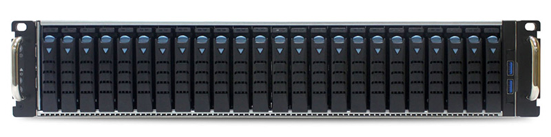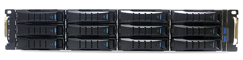 • до 12/24 накопителей 3.5"/2.5" SATA/SAS HDD/SSD с горячей заменой + 2 накопителя для ОС;