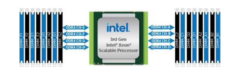 • до 32 модулей памяти DDR4-3200 (8-каналов), максимальный объем памяти 8 TB, поддержка PMEM;