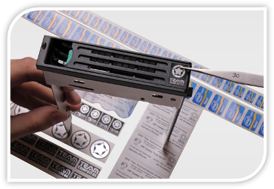 Процесс маркировки сервера Team представляет собой нанесение на внешние и внутренние части сервера специальных наклеек (стикеров), содержащих информацию об изделии или отдельных его компонентах, а также элементы брендирования сервера. Данные стикеры включают: