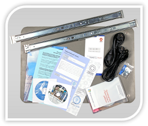- комплектом выдвижных рельсов или фиксированных креплений для установки сервера в 19-дюймовую стойку (опционально);